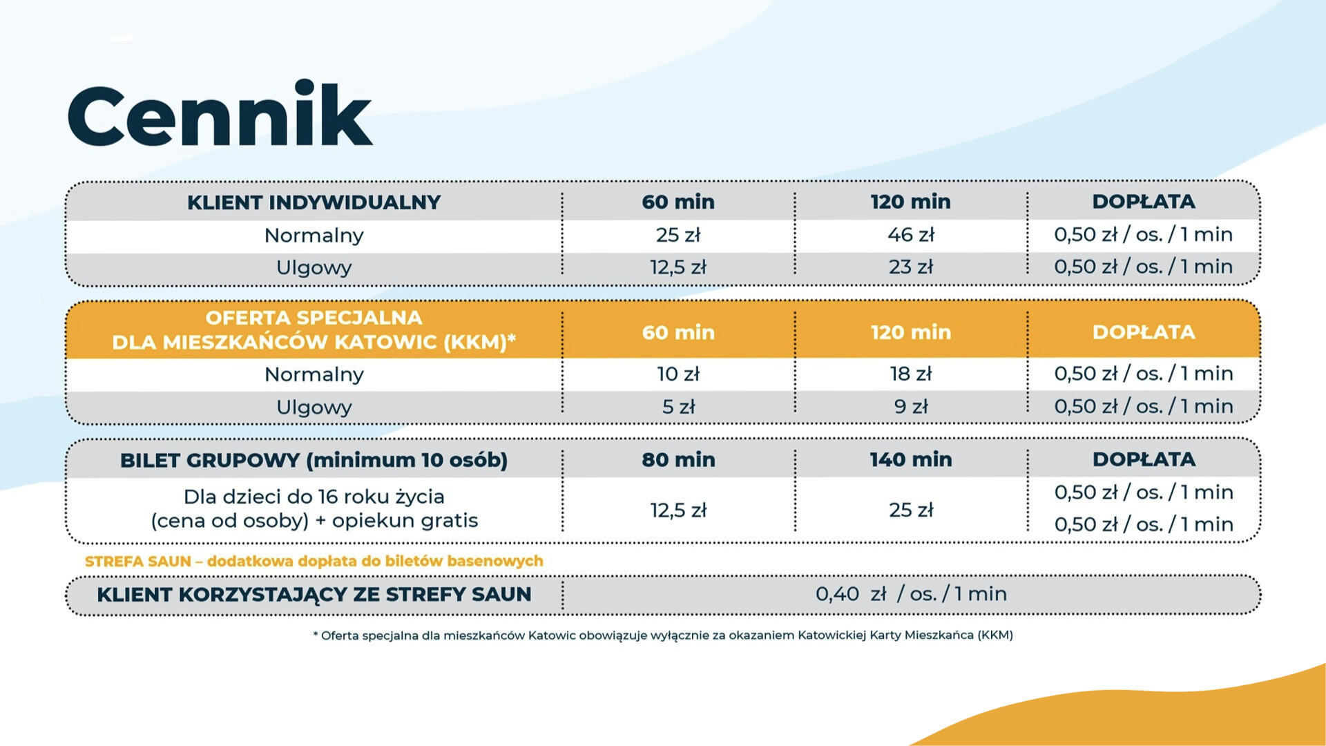 *Oferty specjalne, ulgi, promocje obowiązujące na terenie basenów: